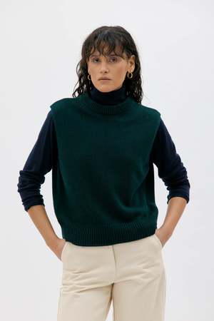 The Nera vest features clean, neat armhole finishes and a relaxed, cropped volume with a ribbed crew neck. This medium-weight piece is exceptionally versatile, designed for easy wear and ideal for layering throughout the year. A timeless addition to any wardrobe, it effortlessly elevates your look when paired with your favorite shirt or dress. Crafted from a luxurious merino wool and cashmere blend, it offers a wonderfully soft touch against the skin. Details - 90% wool (RWS), 10% cashmere - RWS: The Responsible Wool Standard - Made in Lithuania Fit - The model is 176 cm and wearing a size S. - Regular fit. - We suggest choosing your usual size.