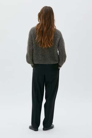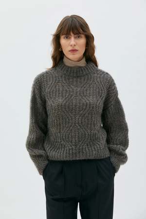 Elevate any wardrobe with the Dove Sweater, where oversized allure meets the grace of lace knit and a blend of premium materials defines a new standard of style and comfort. The Dove Sweater ensures an exquisite balance of warmth, softness, and heightened style. This style features dropped armholes and a relaxed shape with ribbed cuffs and hem. Wear it with tailored trousers for a smart-casual and feminine autumn look. Material: 50% kid mohair, 50% silk Certifications: RMS The Responsible Mohair Standard Item colour: Moleskin (brown) Made in Lithuania. Size & Fit: - The model is 175 cm and wearing a size S. - Generous fit. - Choose your usual size or smaller if you are between sizes.