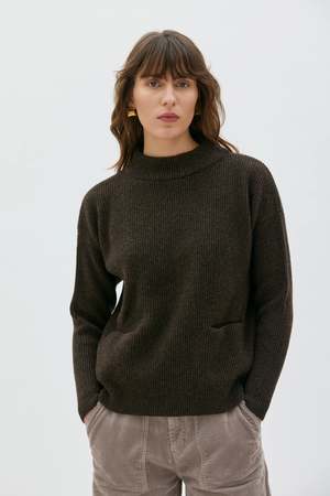 Our Helga sweater is a much-beloved MASKA classic. Made from very soft and fine lambswool, it is tightly knitted in a full cardigan structure. It has a boxy, slightly cropped fit with tighter sleeves that fit comfortably under any coat. The sweater features a sewn-on chimney collar and horizontal integrated pockets. Wear with Jira trousers when working from home or with heavier denim when outside. Material: 100% lambswool. Made in Lithuania. Fit: - The model is 175 cm and wearing a size S. - Regular fit. - We suggest choosing your usual size.