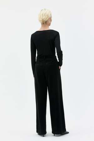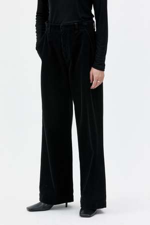 The Aya wide leg corduroy trousers are designed to offer an effortless tailored and neat look. The straight, wide leg and front press folds add a structured detail, making these trousers versatile enough for an elevated everyday look or a stylish evening out when paired with heels. This style has a double hook and bar front closure and is made from organic cotton, wide wale and extra durable corduroy from Germany. The garment-dyed finish means each piece will have its own unique characteristics. Certified to GOTS (Global Organic Textile Standard). Made in Portugal. Fit: Regular fit. The model is 172 cm and wearing a size S. We suggest choosing your usual size.