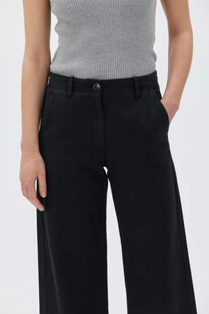 Introducing the new fabric version of the popular MASKA classic Leka, offering effortless style and comfort. This easy-to-wear and versatile style features a straight, cropped wide leg and a normal waist with belt loops for added functionality. With front slip pockets and two welt back pockets, these trousers are both practical and stylish. Expertly crafted from 100% Italian soft recycled cotton twill in a mid weight with a graceful drape. Combine them with a chunky knitted top like the new style Ray and a pair of flat sandals. Product details - 100% recycled cotton (GRS) - Made in Portugal Size & fit - The model is 175 cm and wearing a size S - Regular fit - Choose your regular size