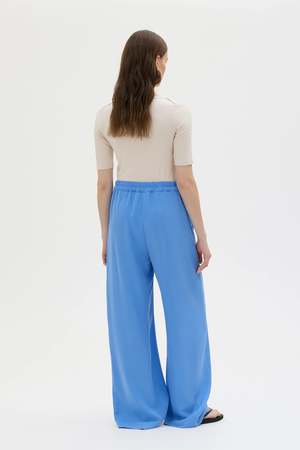Tela is Maskas elongated version of Thea, featuring long wide legs, an elastic waist, and side slip pockets. These trousers are crafted from medium-weight twill Tencel fabric with a soft hand feel and elegant drape. Pair Tela with a tucked-in fine knit top or a chunky knit sweater with sandals for a cool yet polished look. Material: - 100% Tencel (TENCEL) Fit: - Regular fit - Choose your regular size - The model is 175 cm and wearing a size S Made in Portugal.