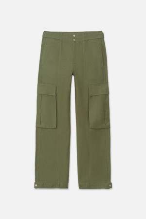 Designed with laid-back appeal, the Wide Leg Cargo pant is cut to a high-rise with an ankle length inseam. It features a double snap closure at the waistband, utlilitarian-inspired pockets, and a cinchable waist and hem with snap closures. Designed in an authentic, 100% cotton fabrication. RIGID DENIM | HIGH RISE | WIDE LEG | ANKLE LENGTH Luxury denim made from 100% premium cotton conforms to your figure as it breaks in for a highly personal, incredibly flattering fit. - High Rise Fit - Machine Wash Cold - 100% Cotton - 12" Front Rise/29" Inseam/20.5" Leg Opening Description tag Designed with laid-back appeal, the Wide Leg Cargo pant is cut to a high-rise with an ankle length inseam. It features a double snap closure at the waistband, utlilitarian-inspired pockets, and a cinchable waist and hem with snap closures. Designed in an authentic, 100% cotton fabrication.