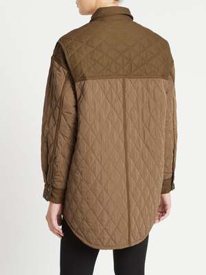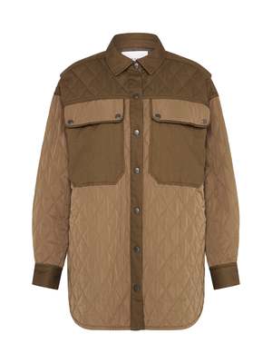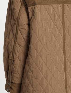 It's all about shackets right now and we have the perfect utilitarian inspided piece by Frame Denim. The Oversized Shirt Jacket in Desert features classic quilting for a super snug feel, long sleeves, snap button closured and ultra cool oversized flap pockets. ---- FABRIC OR COMPOSITION The Frame Denim Oversized Shirt Jacket in Desert is made from 100% Recycled Polyester SIZE AND FIT The Frame Denim Oversized Shirt Jacket in Desert fits true to size Measurements taken from a Size S/M Neck Drop: 8cm / 3.1inches Sleeve Length: 52cm / 20.4inches Outseam: 83cm / 32.6inches Model is wearing a Size S/M, Sarah is 178cm / 59 Bust 83cm / 32 1/4 in /// Waist 66cm / 26 in /// Hips 89.5cm / 25 in