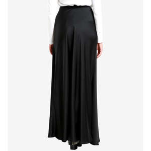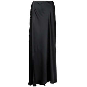 Silk midi skirt featuring a side bow buckle design and a trumpet, A-line silhouette.