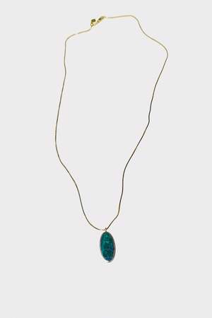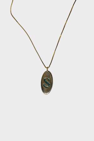 The letter S is cut out of solid 14k yellow gold. The beautiful Malachite Azurite shows through the cut-out letter. The backside of the pendant puts the stunning stone on full display! The pendant is on an adjustable 20 inch .85 mm box chain. 14k recycled yellow gold and Malachite Azurite.