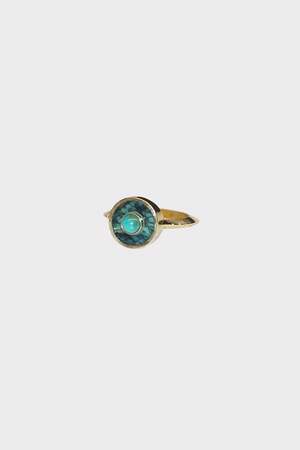 By Young in the Mountains Size 6 14k yellow gold, hand cut turquoise inlay and turquoise center