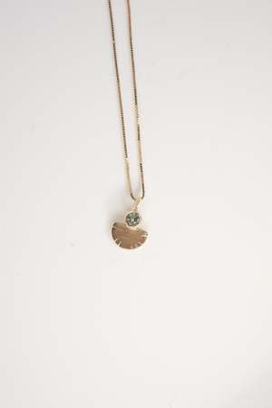 14k yellow gold Aquilla necklace with a 3mm Montana Sapphire. 16" chain 1/4" pendant