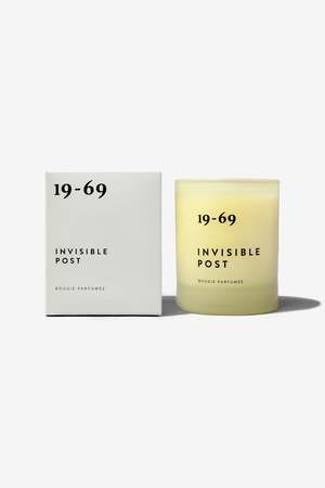 The Invisible Post candle by 19-69 is inspired by the invisible networks of connection formed during the Summer of Love. Bright citrus and green fig create a fresh opening, followed by leafy, slightly fruity notes and a smooth woody base. Light, optimistic, and easy to live with, this candle burns for approximately 48 hours. Notes Top: Petitgrain, Green Fig, Tangerine Mid: Palm Leaf, Black Currant, Cyclamen Base: Sandalwood, Virginian Cedarwood, Tonka Bean Style code: 900373. Volume: 200 ml.