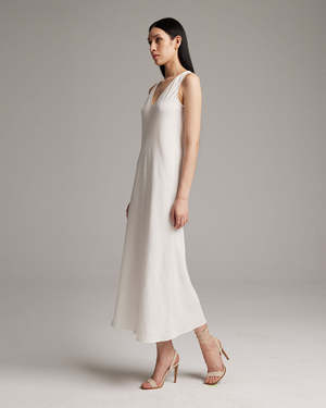 Make an effortless statement with our soft linen maxi dress. The lightweight linen blend makes this the perfect piece for a relaxed warm-weather look. Pair with the Linen Featherlight Blouse or Loose Knit Linen Sweater. - 45% Rayon, 55% Linen - Made in New York City Please allow 2-4 weeks for delivery of pre-ordered SS22 styles.