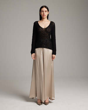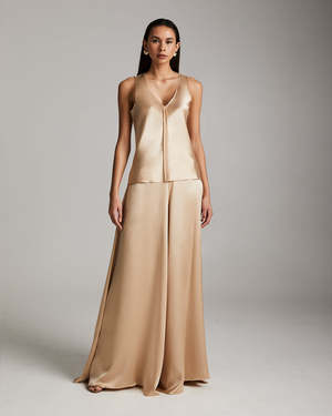 Flowing silk charmeuse pants move beautifully to feature the dramatic palazzo leg. - 100% Silk Charmeuse - Made in New York City - Product Care: Dry Clean Only