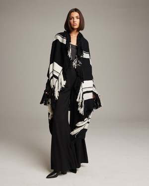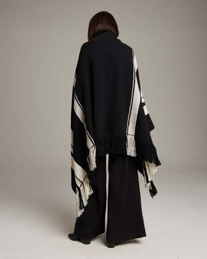 Handloomed thick organic Pima cotton in black, white, and gray colorway, designed with Lucia Aniao - Mixed cotton - Model is wearing One Size fits all and is 5'10" - Product Care: Dry Clean Only