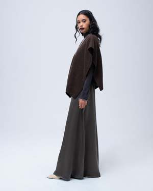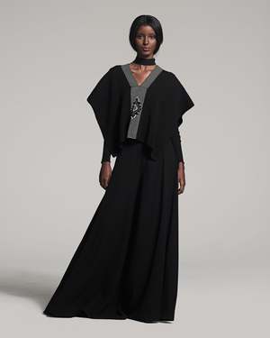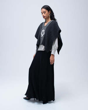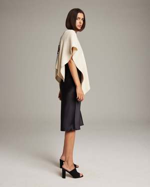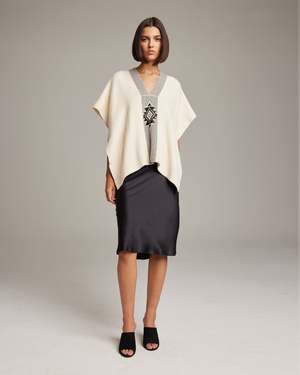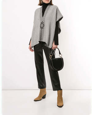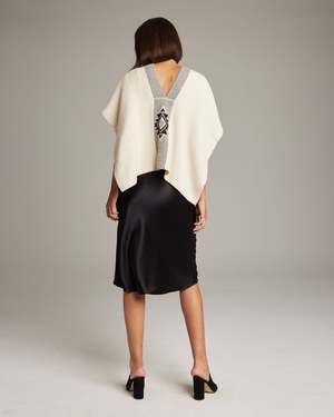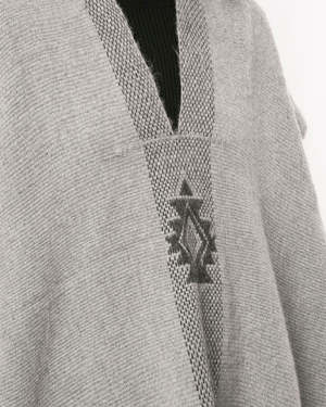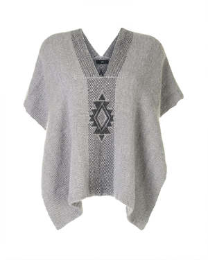 Hand-loomed short manta, or poncho, made in merino features the Estrella. - 100% alpaca hand-loomed in Chile by Mapuche weavers - One Size - Model is 59 - Product Care: Dry Clean Only