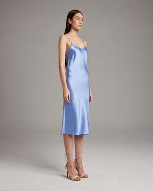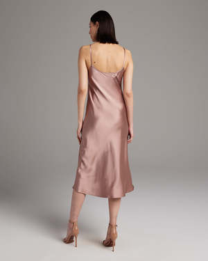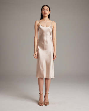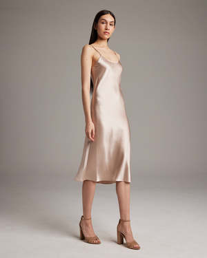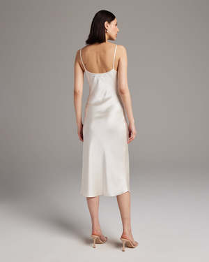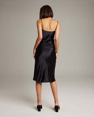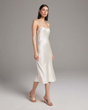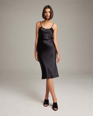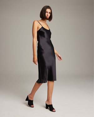 Bias cut silk charmeuse midi slipdress elegantly drapes on the body. This perfect basic can be worn for life, dressed up, or dressed down, for the perfect effortless ensemble. Style with a sweater and boots in the Fall or wear with flip flops in the Summer. - 100% silk charmeuse - Model is wearing a size S and is 5'10" - Product Care: Dry Clean Only