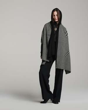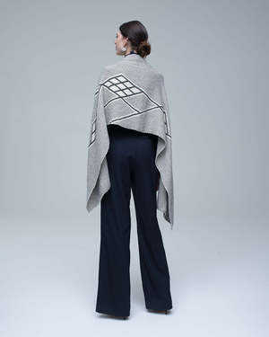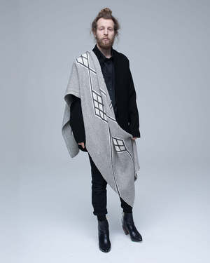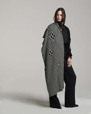Oversized wrap made of hand-loomed alpaca and featuring graphic Che symbols, signifying human unity. 100% alpaca, hand-loomed in Chile by Mapuche weavers. Dimensions: 200 cm x 50 cm. Care: Spot clean with mild cleaning agent. Dry clean as needed.