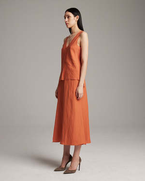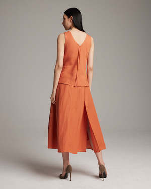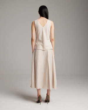 This beautiful Sleeveless Raw Center Seam Top is made from lightweight linen rayon blend with a raw center detail. Pairs perfectly with our Bias Midi Skirt or Raw Silk Trouser. - Dry Clean or Hand Wash - Made in NYC