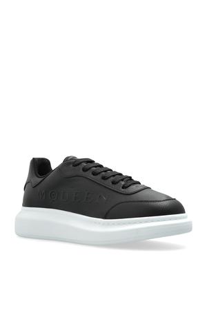 Experience refined sophistication with these Leather Sport Sneakers by Alexander McQueen. Designed with a sleek low-top silhouette and smooth, rounded toe, each pair exemplifies a harmonious blend of tradition and modern innovation. The exterior is meticulously crafted from premium natural leather, radiating understated luxury with its minimalist monochrome design and distinct embossed side. Signature wide black laces and an iconic, prominent MCQUEEN logo2 lend an unmistakable mark of exclusivity. Inside, the comfort continues with a smooth leather lining featuring the embossed Alexander McQueen signature. The thick, contrasting white rubber sole offers standout visual impact while ensuring elevated cushioning with every step. Composition: Inner Layer: Fabric Leather Outer Layer: 100% Leather Sole: 100% Rubber
