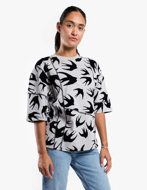 The Ergonomic Tee in Light Grey features Alexander McQueen's latest swallow print and black seam detailing. Designed with a loose fit.