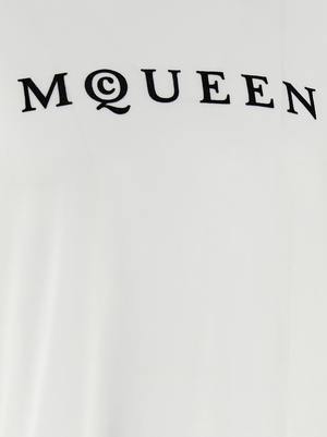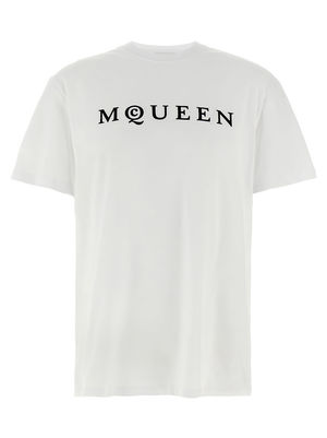 Cotton jersey T-shirt with front flocked 'McQueen' logo2, crew neck, and short sleeves with dropped shoulders. Composition: 100% cotton.