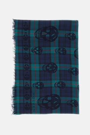 Sharp-cut tartan scarf with printed skulls. Made in Italy, black color. Composition: 100% Wool.