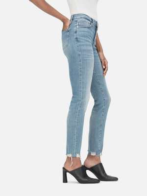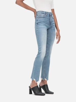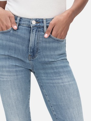 Le High Straight is Frame's best-selling model. Designed with a fitted high waist, flattering cropped straight leg, and modern raw hem for extra punch. Made from a super-stretch cotton-modal blend, it offers versatile wear with the softest and most comfortable feel. Details: - High waist - Straight leg - Stretch denim - Raw hems - Measurements from size 26: front rise 10.5", inseam 27", leg opening 14.25" - It is recommended to take your usual size - Model is 5'6" and wears size 26 - 77% cotton, 8.5% modal, 3.5% elastomultiester, 1% elastane - Machine wash