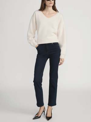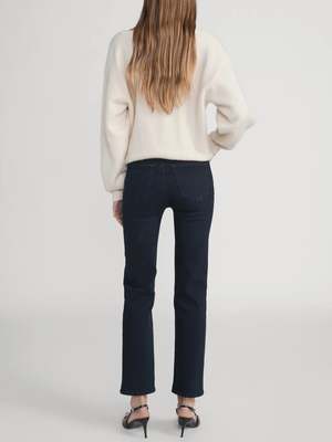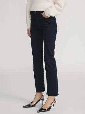 Ultra-stretch denim with superior recovery, Le Sleek Straight adapts to your body for comfort and fit. The ultimate straight-leg jean, they feature a high-rise waist and relaxed straight leg that hits at the ankle. Designed to be elevated up or down with ease. Sizing and information: true to size. The model is 5'10" and wears size 26. Machine wash cold. 49% Cotton / 21% Pre Consumer Recycled Cotton / 17% Post Consumer Recycled Polyester / 11% Modal / 2% Elastane.