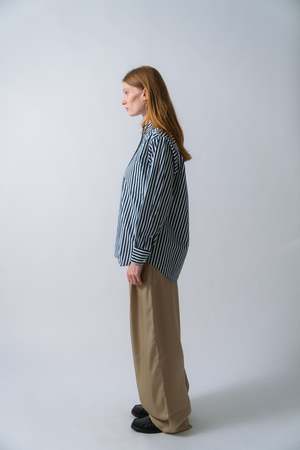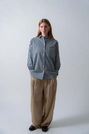 This organic cotton poplin button-down is a wardrobe staple because of its flawlessly oversized fit, which pairs especially well with your blue denim. - 100% cotton - Hand wash only - Fits true to size Colour: Navy Blue.