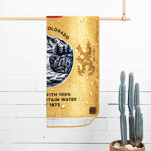 Soft Material - This die-cut beer can towel has a printed velour front which makes this towel the perfect lounging companion. Absorbent - These towels have a non-printed looped terry 460 GSM back that is made for optimal drying. Functional - Features a drawcord loop for quick drying and is printed with a reactive dye that prevents fading over time. Size - 34 x 64 in. | 86.36 x 162.56 cm. Versatile - Perfect for the beach, pool, lake, hot springs or wherever your adventures take you. Sustainable - Made from 100% sustainably sourced cotton. 2023 Coors Brewing Co. All Rights Reserved This item is final sale.