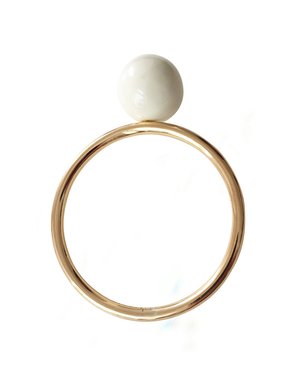 Since 2009, New York design duo Louis Decicco and Mari Ouchi have been making pieces that you can think and talk about. Working with a very thoughtful touch and twist in sense of humor, the duo creates work that challenges peoples eyes and minds, using unexpected materials to transform objects with surprising grace and vision. - Oversized resin ball - 100% resin - Sterling silver ring - One size: sz 6 - Designed and handmade in New York city