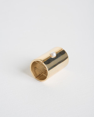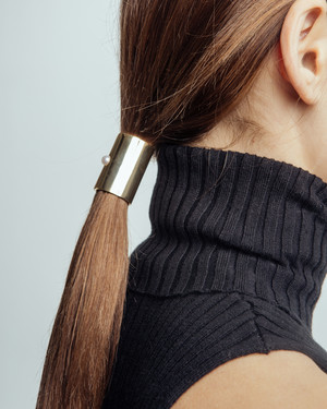 Since 2009, New York design duo Louis Decicco and Mari Ouchi have been making pieces that you can think and talk about. Working with a very thoughtful touch and twist in sense of humor, the duo creates work that challenges peoples eyes and minds, using unexpected materials to transform objects with surprising grace and vision. Metal tube hair clip 18K gold 1,2 (3,3 cm) outside diameter / 1,3 (3,5 cm) height Designed and handmade in New York city