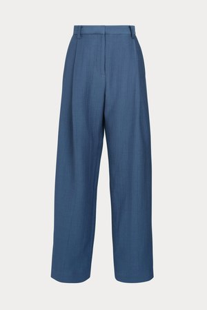 Tailored yet relaxed straight-leg pants cut from Rachel Comeys signature Italian foam jacquard, created through a unique double-layer weaving process for a soft, cocoon-like feel. Features pleat details with side and back pockets and resists wrinkling, making it ideal for packing. Style: 254W-507-T1009 86% Cotton, 14% Polyamide Made in USA.