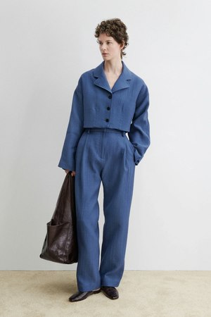 Ultra-cropped jacket with voluminous sleeves and darts at the waist for a structured, mini blazer look. Cut from Rachel Comeys signature Italian foam jacquard, created through a unique double-layer weaving process for a soft, cocoon-like feel. This garment is fully lined and perfect for packing due to its resistance to wrinkling. 242W-710-T1009 86% Cotton, 14% Polyamide Made in USA.
