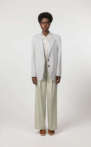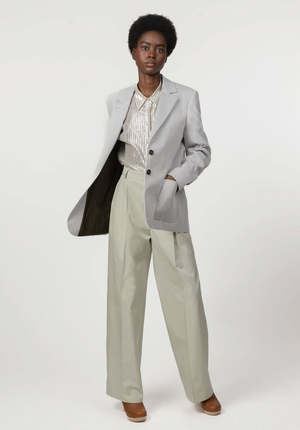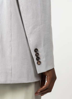 Beautifully tailored jacket in Italian yarn-dyed striped cotton. Single-breasted with a two-button closure. Boxy silhouette with set-in sleeves. Functioning sleeve buttonholes. Front bluff welt pockets, internal welt pocket, and back vent. Fully lined. 100% cotton. Fabric woven in Italy. Made in Poland. Dry clean. Size T2: Bust: 42" Hips: 45" Back shoulders: 16.25" Sleeve length: 25" Front shoulder to hem: 29" Cuff: 10.5" Size T3: Bust: 42" Hips: 46" Back shoulders: 16.5" Sleeve length: 25.5" Front shoulder to hem: 29" Cuff: 10.75"