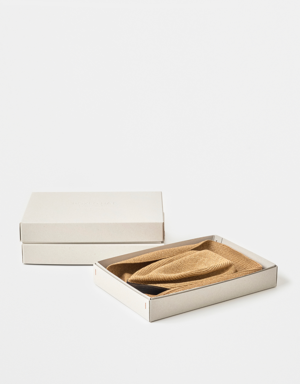 This streamlined, large-brimmed, pliant minimalist hat provides ample sun protection and maximal chicness. Made from all-natural materials, it's lightweight, soft to the touch, travel-friendly, and can be folded into a bag for easy grab-and-go use. Suitable for an average to larger head up to 17". Made in Japan in small numbers 82% paper, 18% polyester Comes folded into box 57.5 cm circumference, 11 cm brim