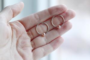 Silver + pearl circles earrings - Large hoop studs - Delicate minimalist circle stems - Sterling silver and pink freshwater pearls. Made in Montreal.