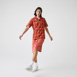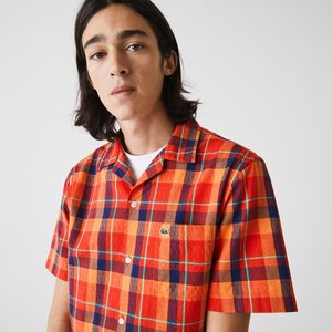 Lacoste Mens Hawaii Fit Check Cotton Fabric Shirt Red / Orange / Blue PRODUCT REF. CH0960-00 Complete your wardrobe this season with this colourful check shirt. Crafted in a premium cotton fabric, it has a Hawaiian collar, a flat chest pocket and buttons in authentic mother-of-pearl. At the city or seaside, wear it with a T-shirt or directly on the skin. - Hawaiian collar - Hawaiian fit - Madras check cotton fabric - Flat chest pocket and mother-of-pearl buttons - Embroidered green crocodile on chest pocket - Cotton (100%) - The model's height is 6'2" and is wearing size 40