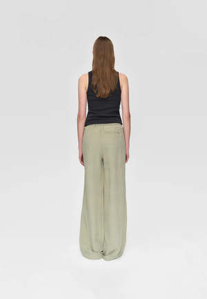 Wide leg casual pants with a dressed front and an elastic waist at the back for a more flexible fit. Made from a luxurious blend of linen and viscose. 55% linen / 45% viscose.