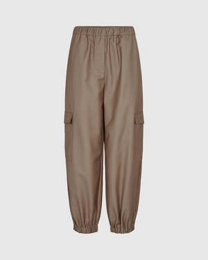 A pair of sporty cargo pants crafted from polyester and viscose for smooth and easy quality. The pants have an oversized fit and feature two back pockets, two large side pockets and an elastic waistband. They are detailed with volumnious pants legs. The model is 170 cm tall and wears a size 36. 80% polyester / 20% viscose