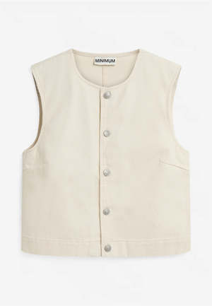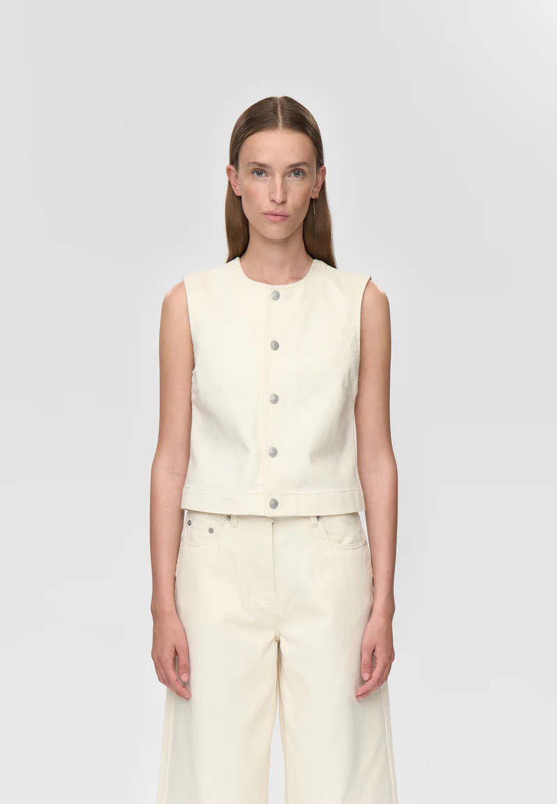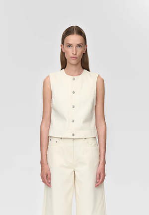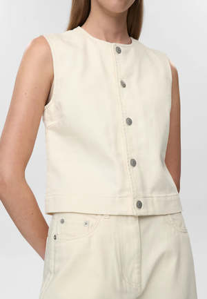 Cotton twill vest with a fitted cut, round neckline, and logo2-engraved metal buttons at the front. 100% cotton.