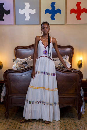 CAROLINA K Marieta Dress Gardenia V-neckline, Tiered skirt with appliqu details, Maxi length, Relaxed fit, Lined Composition: 100% Organic Cotton Color: Gardenia Fit: True to Size