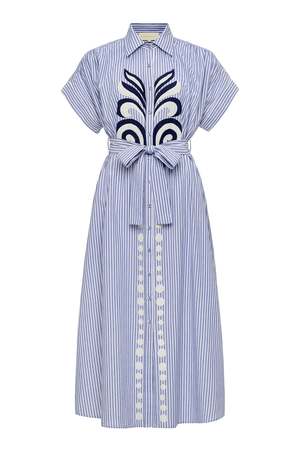 The Valerie Kaftan by Carolina K is crafted from 100% organic cotton in a navy colorway. Features a loose fit and runs largesize down for best fit. Final Sale.