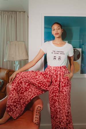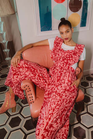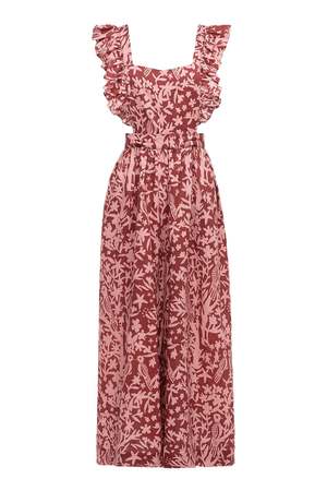 CAROLINA K Karen Jumpsuit Birds print, Apron-style/ Square neckline, Flutter sleeves, Open-back, Removable top; Can be worn as pants, Slash pockets, Wide leg, Unlined Composition: 100% Linen Color: Rose Tan Fit: High waist Title tag Karen Jumpsuit CAROLINA K Description tag Karen Jumpsuit CAROLINA K at Curio Faena Bazar Miami, summer collectsion Age group Adult Age group Adult Gender WOMEN Condition New