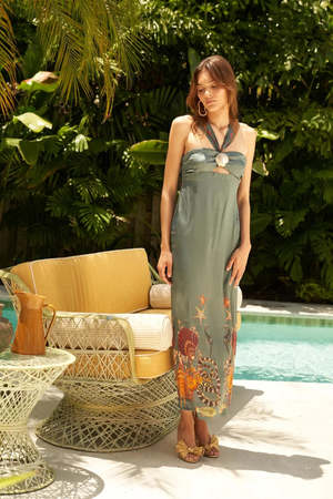 The Rea Dress by Carolina K in Coral Reef is crafted from 100% Silk Lycra. Fit: True to Size.