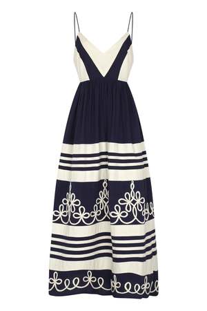 The Amelia Dress by Carolina K is crafted from 100% organic cotton poplin. Model wears size small. Fits true to size.