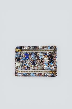 Small Faces VP01 Zipper Wallet from BLESS. The Small Faces Wallet features a photographic crowd print that creates a fashion-forward cardholder. The wallet has gold-tone zip detailing. - 100% Leather - Made in France