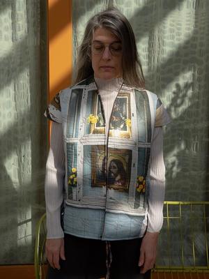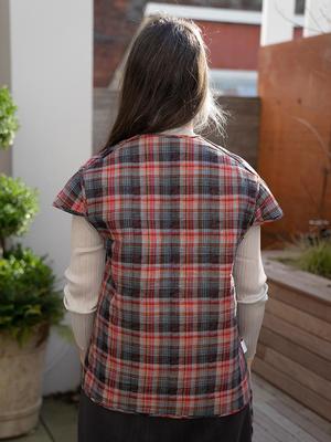 This reversible vest is the ideal piece for warmth, flourish, final touches. It's a simple piece with many uses. We can imagine putting it on in the morning over pj's to feel a bit cozy. Or over a coat if you need one final layer. One side brash, the other more utilitarian. Unisex.
