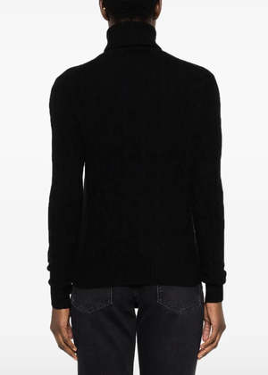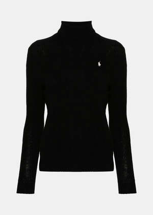 Polo pony-embroidered jumper in polo black. Wool-cashmere blend cable knit with roll neck, long sleeves, ribbed cuffs and hem. Features signature polo pony motif embroidery, internal logo2 tag, and straight hem. 90% Wool 10% Cashmere Made in China.