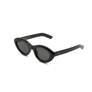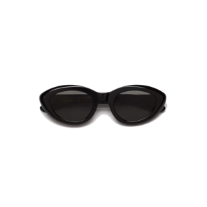 Designed for Spring/Summer 2021 collectsion, Cocca is a playful silhouette characterized by its thick curvaceous lines and features. A fresh interpretation of cat-eye vintage frames, with thick acetate construction, low nose-bridge and wide lenses. This model comes in black acetate with black lenses. Sizes: R Lens Width: 52 mm Frame Side: 145 mm