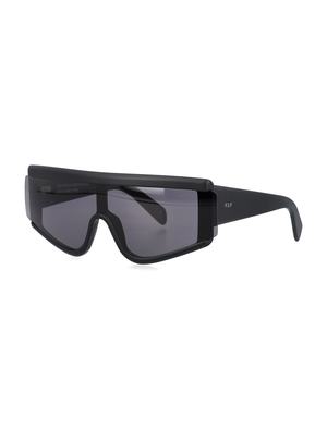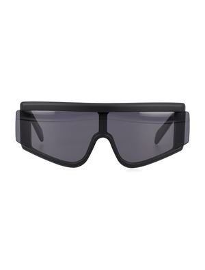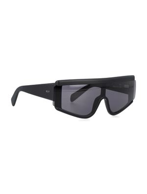 Zed Black Sunglasses by RetroSuperFuture. Featuring an all-black silhouette with dark black lenses, logo2 print at the temples, and curved tips. Lens width: 6 cm. Frame side: 14 cm. Composition: 100% acetate.
