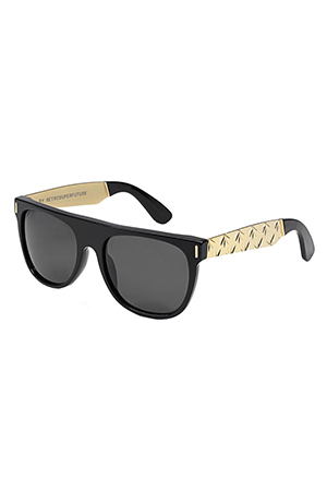 The timeless Flat Top silhouette in black with accented gold metal arms by Super. Engraved weed leaf design on the gold arms. - Made in Italy - 100% UV/UVB Protection - Premium Zeiss Lenses